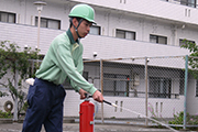 震災時の避難方法や、消火器の使用方法などを訓練し防災に努めています。